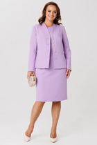 Костюм трехпредметный: состоит из блузы, юбки и жилета. Блуза прямого кроя с центральной застёжкой на петли и пуговицы. Вырез горловины глубокий округлый. Линия плеча приспущена. На рукавах изделия заложена декоративная сборка с регулируемыми завязками (кулиса). Жилет удлиненный свободного прямого силуэта, воротник пиджачного типа. Линия низа по переду и спинке фигурная ассиметричная. Короткий рукав-крылышко. Талия фиксируется съемным ремнем из экокожи, для которого в боковых швах оформлены шлевки. Ремень идёт в комплекте к изделию. Юбка - солнце с узким поясом. В боковых швах расположены карманы. Застёжка на петлю и пуговицу и молнию по спинке.