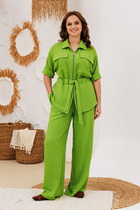 Костюм двухпредметный: состоит из джемпера и брюк. Джемпер из комбинированной ткани свободного силуэта. Рукав реглан. Воротник стойка. Брюки со стрелкой свободного кроя, верхний срез представлен широкой резинкой, с карманами.