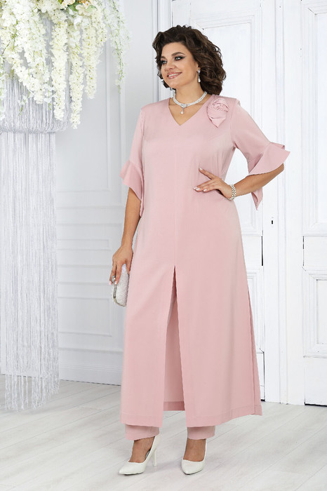 Длинная туника этого костюма не только подчеркивает его изысканный характер, но и служит важным элементом создания правильного силуэта для женщин с великолепными формами. Ее линии и длина прекрасно балансируют фигуру, придавая ей гармоничность и элегантность.