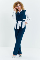 Элегантный брючный костюм – идеальный выбор для вечернего выхода, торжества или особого случая. Легкая шифоновая туника с асимметричным кроем и струящимися рукавами добавляет образу воздушности и утонченности. Удлиненная спинка делает силуэт элегантным и зрительно вытягивает фигуру. Прямые классические брюки из костюмной ткани великолепно садятся по фигуре, обеспечивая комфорт на протяжении всего дня. Идеально подойдет для вечернего выхода, праздников и торжественных мероприятий. Легкий и женственный образ для любого типа фигуры.