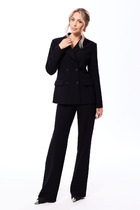 Этот костюм – классика, которая не выходит из моды. Благодаря своему универсальному крою он станет отличным выбором для офисного стиля, подчеркнет ваш статус на деловых встречах и станет элегантным решением для праздничного выхода. Жакет выполнен в классическом стиле с двубортной застежкой на декоративные пуговицы, отложным воротником и элегантными лацканами, которые придают образу нотку аристократичности.
