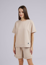 Джемпер полуприлегающего силуэта, выполнен из хлопкового трикотажного полотна. Перед с нагрудными вытачками, выходящими из пройм. От горловины вниз застрочены 4 складки. Горловина переда и спинки округлой формы, по переду углубленная. Срезы горловин окантованы косой бейкой. Рукав втачной, короткий. Длина джемпера -60 см (46-50 р-р), 65 см (52-60 р-р), 67 см (62-66 р-р). Длина рукава – 24,5 см (46-50 р-р), 25,5 см (52-60 р-р), 26,5 (62-66 р-р).