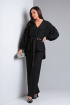 Стильный двух предметный  костюм для женщин из костюмной  ткани «гальяно» - это идеальное сочетание комфорта и элегантности. Такой  костюм подходит как для офисного делового образа, так и для повседневного ношения. Жакет костюма выполнен в классическом стиле на пуговицах, без воротника с накладными карманами. Рукав длинный на манжете с патой на петлю и пуговицу. По боковым швам обработаны разрезы. Брюки костюма имеют прямой крой в стиле палаццо, что позволяет создать строгий и элегантный образ. Карманы на брюках расположены по бокам, что добавляет практичности и функциональности. Пояс брюк на резинке. Этот костюм не только обеспечит вам ощущение комфорта в любой ситуации, но также придаст изящности и женственности вашему образу. Если к костюму  добавить из Вашего  гардероба белую нарядную блузу-  получится нарядный комплект.