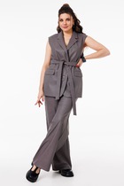 Стильный комплект состоящий из жакета, брюк и блузы. Жакет прямого силуэта с пиджачным воротником, подкладка на полочке,  без застежки. По бокам накладные карманы  с клапанами. На правом клапане декоративная нашивка. По талии кулиска. Рукава втачные, длиной три четверти с патами. Брюки прямые, зауженные к низу, с отворотом, пояс притачной на эластичной тесьме с кулиской,  боковые карманы . Блуза прямого силуэта, рукав короткий. В комплекте два шнурка белый и в тон костюма.
