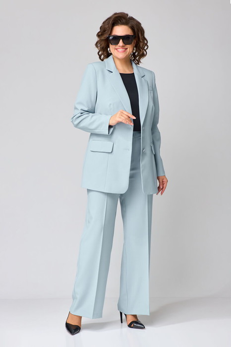 Комплект женский, состоящий из жакета и брюк, выполнен из однотонной костюмно-плательной ткани.