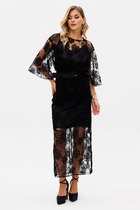 Юбка длинная, зауженная книзу. На переднем полотнище разрез по левой ноге. На заднем полотнище средний шов и вытачки, застежка на потайную молнию. Верхний срез обработан обтачками. Юбка на подкладке.