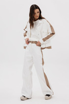 Брюки: Высота посадки - 28см, Длина брюк без пояса - 102см, Длина по шаговому шву - 78см, Ширина брючин сверху - 65см, Обхват брюк по низу - 56см, Ширина по бедрам - 55см, Ширина по талии - 39см