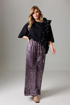 Текстильный костюм-двойка из свободного жакета со шлицами и брюк со складками