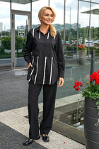 Длина жакета по спинке около 74/77 см, длина рукава около 61 см; длина брюк по боковому шву с поясом около 112/113,5 см