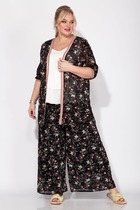 Длина жакета по спинке около 70 см в размерах 40-46 и около 73 см в размерах 48-52, длина рукавов около 62 см. Длина брюк по боковому шву с поясом около 112,5 в размерах 40-46 и около 114 см в размерах 48-52, длина по внутреннему шву около 80 см.