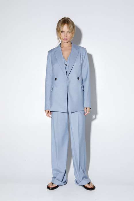 Длина жакета по спинке около 68/71 см, длина рукава около 61 см. Длина брюк по боковому шву с поясом около 113/114,5 см.