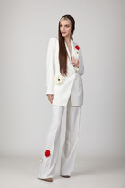 Костюм-двойка из укороченного оверсайз жакета с расширенными плечами и миди-юбки с разрезом. Детали: прямой силуэт, спущенная линия плеча, пиджачный воротник, перед с функциональным нагрудным карманом, застежка двубортная на петли и пуговицы, рукава втачные двухшовные, жакет на подкладке. Юбка асимметричного кроя с высоким разрезом по переду, притачной пояс со шлевками, застежка на молнию и пуговицу, боковые карманы.