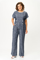 Длина жакета по спинке около 68,5 в размерах 40-46 и около 71,5 см в размерах 48-52, длина рукавов около 63 см. Длина брюк по боковому шву с поясом около 109,5 см, длина по внутреннему шву около 83 см