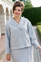 Длина жакета по спинке около 69 см в размерах 40-46 и около 72 см в размерах 48-52, длина рукавов около 62 см. Длина юбки по боковому шву около 43 см в размерах 40-46 и около 46 см в размерах 48-52.
