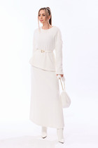 Детали: кардиган свободного покроя со спущенной линией плеч, длинные рукава, съемный пояс. Мини-платье с глубоким вырезом и сборкой по бокам в районе талии.