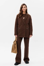 Длина жакета по спинке около 69 см в размерах 40-46 и около 72 см в размерах 48-52, длина рукавов около 62 см. Длина топа по спинке около 27,5 см в размерах 40-46 и около 29 см в размерах 48-52. Длина брюк по боковому шву с поясом около 113 см в размерах 40-46 и около 114,5 см в размерах 48-52, длина по внутреннему шву около 82 см