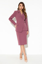 Длина жакета по спинке около 69 см в размерах 40-46 и около 72 см в размерах 48-52, длина рукавов около 62 см. Длина брюк по боковому шву с поясом около 114 в размерах 40-46 и около 115,5 см в размерах 48-52. Длина по внутреннему шву около 83 см
