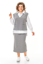 Длина жилета по спинке около 54 см в размерах 40-46 и около 56 см в размерах 48-52. Длина брюк по боковому шву с поясом около 114 см в размерах 40-46 и около 115,5 см в размерах 48-52. Длина по внутреннему шву около 83 см