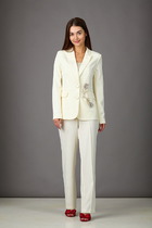 Длина блузы по спинке около 69 см в размерах 40-46 и около 71 см в размерах 48-52, длина рукава+ спуск плеча около 50+12 см. Длина брюк по боковому шву с поясом около 104 см в размерах 40-46 и около 105,5 см в размерах 48-52, длина по внутреннему шву около 77,5 см