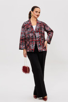 Костюм-двойка из оверсайз жакета и мини-юбки из костюмной ткани с бантиками из флока.