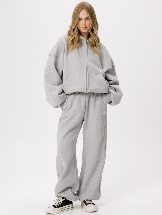 Спортивный костюм-двойка из оверсайз зип-худи и свободных брюк из трехнитки с начесом.