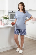 Джемпер – свободного покроя, с рукавами на основе цельнокроеных длиной до локтя, горловиной овальной формы, обработанной втачной планкой, разрезами в боковых швах и принтом на полочке. Рукава – с цельнокроеными манжетами-отворотами. Модный элемент- разность длины полочки и спинки на 10 см.