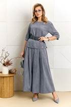 Комплект, состоящий из жилетки, топа и брюк. Жилетка свободного кроя, длиной выше колена. Спинка со средним швом, в котором обработан разрез. Перед с нагрудной вытачкой. Пройма глубокая, квадратной формы. Воротник пиджачного типа со стойкой. Жилетку дополняет шифон по спинке и переду. Жилетка без застежки на подкладке. Топ на бретелях, двойной, длиной выше бедер, с неровной линией низа (спинка удлинена). По переду топа нагрудные вытачки. Брюки длинные, широкие, на притачном поясе с резинкой. По спинке талиевые вытачки. По переду, с правой стороны, вставлена деталь из шифона, выполнена в виде запаха, которая крепится с левой стороны при помощи пояска и паты с полукольцами. В боковых швах обработаны карманы.