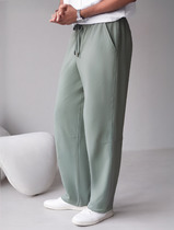 Брюки прямые на резинке из футера двухнитки с эластаном с затяжкой по низу
