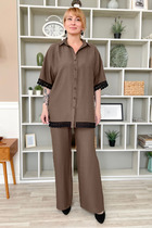 Комплект женский из стрейчевой костюмной ткани на подкладке. Жакет приталенного силуэта с рельефами по переду и спинке, отрезной по линии талии, с роскошной асимметричной баской. Воротник с отложными лацканами пиджачного типа. Рукава - втачные, двухшовные. Жакет застегивается на одну пуговицу. Юбка на подкладке, слегка зауженная к низу, без пояса. Верх юбки обработан обтачкой. Шлица в среднем шве заднего полотнища юбки обеспечит свободу движения. Застежка - молния в среднем шве юбки. Съемная брошь в виде хризантемы ручной работы.
