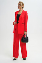 Роскошный комплект, состоящий из жакета и юбки, выполненный из костюмной ткани на подкладке. Жакет прямого силуэта, с нагрудными вытачками, карманами в боковых швах. Рукава - длинные. Застегивается на одну пуговицу. Юбка на подкладке, слегка зауженная к низу, без пояса. Верх юбки обработан обтачкой. Шлица в среднем шве заднего полотнища юбки обеспечит свободу движения. Застежка - молния в среднем шве юбки