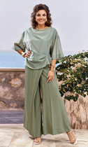 Брюки на притачном поясе со шлевками. На передних половинках брюк расположены рельефы с маленькими разрезами по низу. По спинке в пояс вставлена резинка. Застежка на молнию и пуговицу.