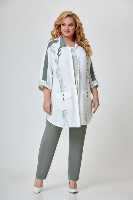Костюм женский трехпредметный, состоящий из кардигана, топа и брюк.