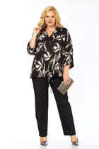 Костюм Элль стиль 2416 черный+принт цветы/черный