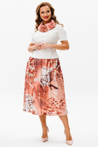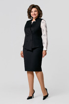 Длина жакета от центра горловины спинки до низа: в 52-56 р-рах — 61,5 см; в 58-64 р-рах — 63,5 см. Длина рукава: 62,5 см. Длина юбки по боковому шву без учёта пояса: в 52-56 р-рах — 62 см; в 58-64 р-рах — 64,5 см.