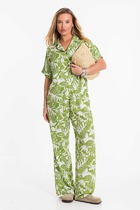 Прямые, широкие брюки с карманами спереди и на поясе с резинкой.