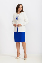 Изящный костюм в стиле Шанель, с идеальным кроем создает роскошный и утонченный образ, который достоин гардероба настоящей леди. Костюм тройка, состоит из жилета полуприлегающего силуэта, блузки и юбки-карандаш. Костюм может использоваться и как нарядный, так и для повседневной носки. Жилет женский двубортный со смещенной застежкой на 1 петлю и пуговицу (размер и цвет фурнитуры может незначительно изменяться от фото) из костюмно-плательной ткани типа Chanel. Перед жилета с рельефными швами, выходящими из проймы и идущими до низа изделия. Спинка жилета с рельефными швами, выходящими из проймы и идущими до низа и средним швом. Жилет без воротника. Углы лацкана прямые. Низ борта закругленной формы. Горловина жилета, обтачная. Лацканы, горловина и низ жилета по краю обработаны бахромой. Блузка женская, прямая, свободного кроя из легкой блузочной ткани. Длина блузки асимметричная, спереди короче чем сзади, с закруглением к боковым швам. Низ блузки обработан швом вподгибку с закрытым срезом. Кокетка спинки двухслойная, переходящая на перед. По центру спинки в шве притачивания кокетки - сборка. В верхней части переда - разрез, обработанный потайной (супатной) застежкой с настрочными планками, застегивается на 4 петли и пуговицы. Горловина круглая, обработана воротником-стойкой. Рукава втачные, одношовные с притачной манжетой, застегивающейся на 2 петли и пуговицы. Юбка-карандаш женская с завышенной линией талии, зауженная к низу, на подкладке притачной по низу. По переду юбки вертикальные рельефные швы. В верхней части задних половинок, стачаны талиевые вытачки и в среднем шве обработана отлетная шлица. В верхней части среднего шва обработана застежка на потайную тесьму-молнию. Верхний край юбки обработан обтачкой. Длина жилета по среднему шву спинки - 57,0 см (±3,0 см). Длина юбки по среднему шву задних половинок - 77,0 см (±3,0 см) Тип ткани на жилет и юбку: костюмная.