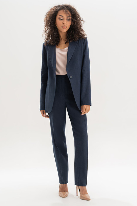 Костюм женский, двух предметный состоит из жакета и брюк, выполненных из костюмно- плательной ткани лен.
