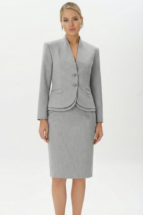 Светло-серый костюм с юбкой URS - это универсальное решение для женщин, которые ценят сдержанную элегантность и уверенность в деталях. Такой образ остаётся актуальным вне времени и трендов, органично вписываясь в деловой гардероб. Женский костюм с юбкой миди подчёркивает профессиональный статус и аккуратный вкус, оставаясь комфортным для активного рабочего дня. Этот классический юбочный костюм создаёт ровно то впечатление, которое требуется в офисе, на переговорах или официальных мероприятиях: собранность, стиль и уверенность.