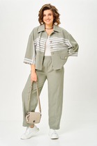 Костюм, состоящий из шорт с прорезными карманами в боковых швах и майки на бретельках с отрезным лифом. На майке с левой стороны внизу расположена печатьТкань: кулирка