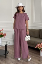 Стильный костюм из трикотажного полотна - футер. Состоит из толстовки и брюк. Толстовка свободного кроя со спущенным плечом. Длинный рукав со спущенным плечом, оканчивается притачной манжетой. Модель с капюшоном. Низ ассиметричный, оформление манжетой, по бокам разрезы. Брюки с комфортной посадкой на талии, которую обеспечивает пояс на резинке. Брючины оканчиваются широкими манжетами на резинке. Модель имеет функциональные карманы в боковых швах. Идеальный вариант для спорта и отдыха.