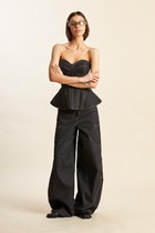 Брюки женские свободного силуэта из хлопковой ткани с «креш»-эффектом, высокая посадка, брюки на резинке, пояс притачной со шнуром, боковые карманы в швах. Длина по боковому шву - 108 см (без пояса). Длина по шаговому шву - 83 см.