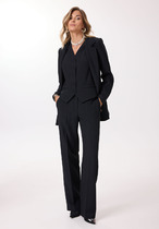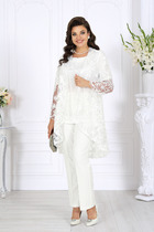 Костюм женский двухпредметный, состоящий из жакета без подкладки с капюшоном и прямых брюк с защипами.