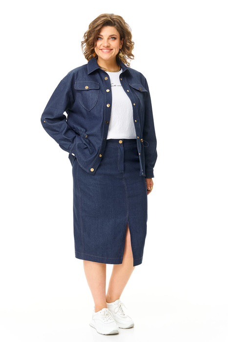 Юбка миди зауженная к низу с разрезом спереди. Застежка на переднем полотнище на молнию и пуговицу. В боковых швах карманы с отрезным бочком. Заднее полотнище со средним швом. Пояс притачной с резинкой в боковых швах. Отделочные строчки контрастного цвета.
