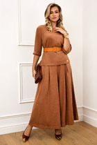 Юбка на подкладке зауженного силуэта типа "карандаш". В среднем шве заднего полотнища застежка на потайную тесьму-молнию и шлица. Пояс притачной с резинкой в боковых швах.