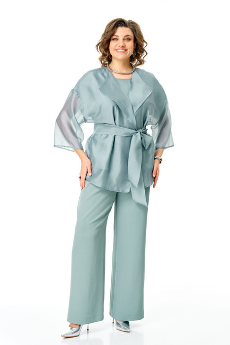 Блуза из премиальной ткани "Искринка" типа вуаль, свободного покроя со спущенной линией плеча. Воротник типа "апаш". Спинка со средним швом. Рукав длиной 3/4. Имеется навесной пояс.
