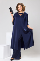 Данный костюм отлично подходит для торжественных мероприятий, свиданий, работы в офисе если дополнить его соответствующими аксессуарами и обувью Блузка свободного силуэта, с фигурной линией горловины по форме «лодочка»; по переду блузки нагрудные вытачки. По спинке блузки вырез капелька с застёжкой на пуговицу. Рукав втачной, длинный с фигурным вырезом, по низу рукава манжета с застёжкой на петли пуговицы. Брюки-кюлоты свободного силуэта, длиной 7/8 расширяются к низу. Пояс притачной со вставкой эластичной тесьмы-резинки, которая обеспечивает максимально удобную посадку на любой тип фигуры. По переду брюк от верха застрачиваются складки. В задней части брюк застёжка на тесьму-молнию в шве и пуговицу в поясе. В боковых швах брюк - карманы. Длина блузки от высшей точки плечевого шва до низа 60 см (р 50-54), 61 см (р 56-60). Длина рукава 61 см (р 50-54), 62 см (р 56-60). Длина брюк по боковому шву от шва притачивания пояса 93 см (р 50-54), 94 см (р 56-60).