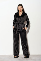 Костюм женский. Футболка оверсайз, с принтом. Брюки выполнены из полотна эксклюзивного дизайна; расширенные к низу, с боковыми карманами, на притачном поясе с отстроченной эластичной тесьмой.