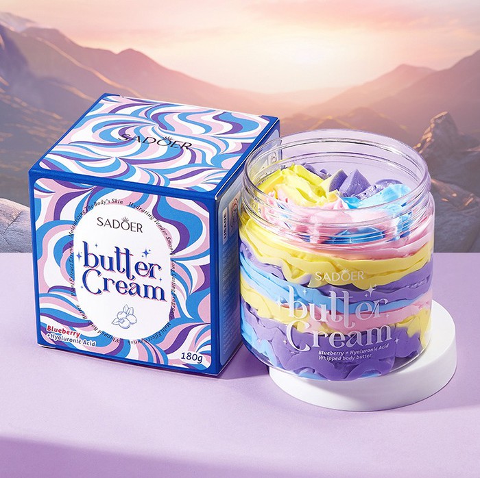 Совместные покупки Челябинск Косметика и парфюмерия Прочий макияж — Крем-баттер для тела увлажняющий с Черникой и Гиалуроновой кислотой SADOER, 180