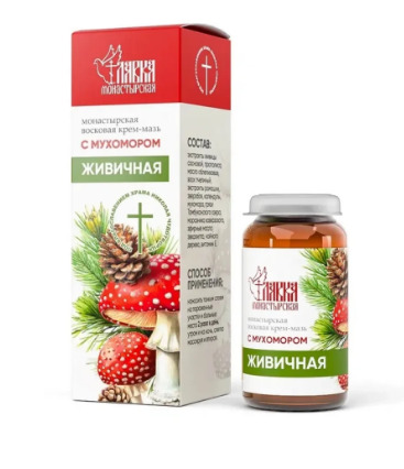 Экстракты живицы сосновой, прополиса, масло облепиховое, воск пчелиный, экстракты ромашки, зверобоя, календулы, мухомора, грязи Тамбуканского озера, морозника кавказского, эфирное масло эвкалипта, чайного дерева, витамин Е.