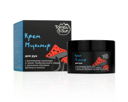Крем на основе отвара и масляной вытяжки мухомора создан для бережного ухода за кожей рук. Композиция ценных масел и вытяжки целебной тамбуканской грязи в составе ценятся за свои питательные и увлажняющие свойства, могут восстанавливать эластичность тканей.